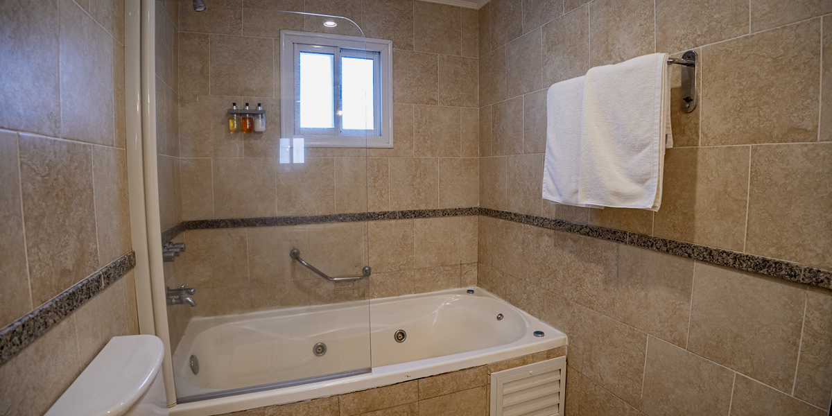 Nuestras SUITES STANDARDS están equipadas con: escritorio, WiFi y teléfono, por si tú visita también está relacionada a los negocios. Ambiente climatizado para tu confort en cualquier época del año. Caja de seguridad para tus pertenencias; camas King Size y TV LED. Además, tenés a tu disposición batas, frigobar con bebidas y para la hora del rélax: hidromasaje con agua termal.